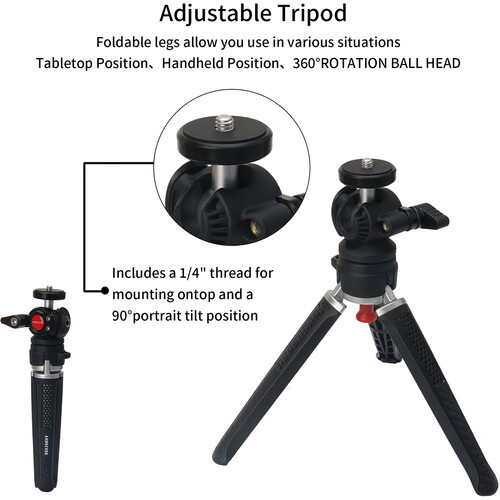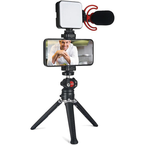 Elevate the quality of your mobile video and photo projects with the VK-1 Smartphone Vlogging Kit from ANDYCINE. The kit includes a smartphone clip, mini tripod, shotgun microphone, and RGB LED illuminator. The clip can quickly and securely hold 2.12 to 6.11" wide phones via an automatic switch. When mounted on the tripod, a 90° slot allows for widescreen and portrait orientation, plus you can fold the legs for handheld shooting. Your subject is easily heard and properly lit thanks to the unidirectional cardioid pickup pattern of the mic, and a light with 73 LEDs and CRI 95+ color accuracy. It's an ideal kit for interviews, vlogs, livestreams, and even video conferencing.