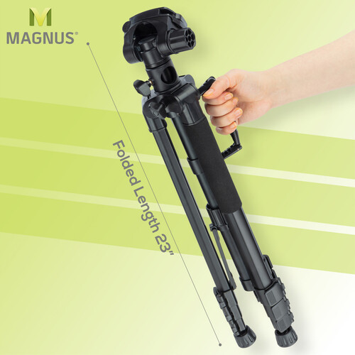 The LM-700 Lateral Aluminum Tripod with Monopod from Magnus is a sturdy, all-weather aluminum tripod with a pan-and-tilt head that supports up to 10 pounds of photo or video gear. It features a removable center column that becomes a five-section monopod suitable for outdoor, nature, and sports photography. The LM-700's center column also offers a convenient lateral option for extending a camera horizontally out from the tripod and suspending it over a subject when shooting documents or artwork. The LM-700 has a maximum height of 70 inches, folds down to a compact 23 inches, and includes a nylon carrying bag with shoulder strap for transport and storage.